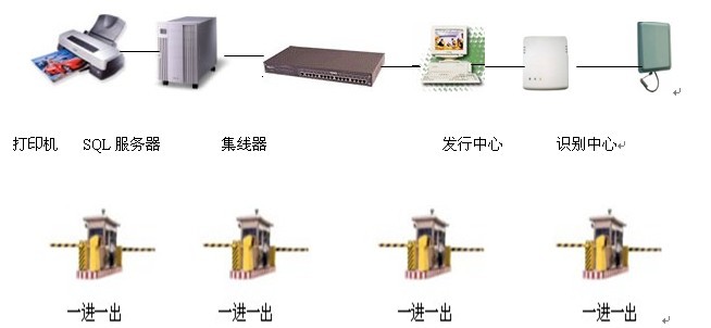 系统由临时发卡机、远距离读卡器、票箱、电子显示牌、语音系统、对讲系统和道闸机等组成。如果需要车辆出入照片抓拍功能,还需要增加抓拍模块、视频采集卡和摄像头。