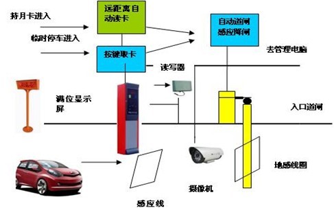 持月卡汽车行驶到入场读写器的感应线圈内,读写器会自动进行识别卡,并卡信息上传到后台服务器,电脑会自动进行记录、扣费,控制道闸自动开闸。司机开车入场,压到道闸地感线圈,道闸自动关闭。