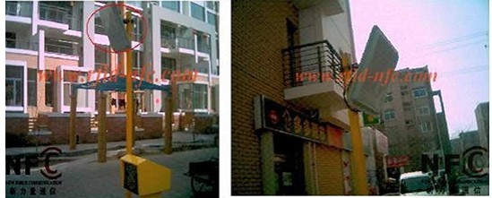 道路中间没有设安全岛,读写器或天线装在道路两旁,两两相对安装,避免读卡有效区域重叠。